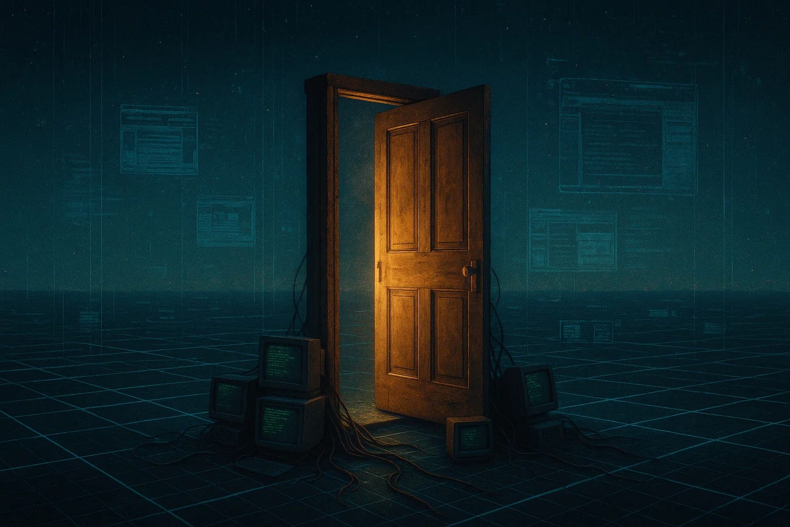 I have never given much thought to the act of logging in and logging off. I never noticed these boundaries between the real-world and the digital realm. We move through doorways, arrive, and we left. The internet lives in a place, and that place had a door. It took a long time for me to notice the door went missing.